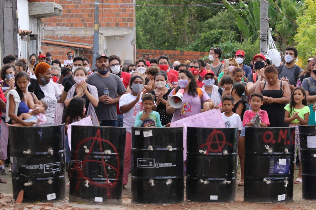 Começamos então a planejar nossas ações. Muitas assembleias, muitas reuniões. O poder judiciário havia determinado ordem de despejo para o dia 2 de setembro. Se a existência de milhões de famílias sem teto – e pior, em plena pandemia – não é motivo suficiente para a Justiça ser justa, então o que nos resta é lutar. Ocupamos a Secretaria das Cidades do governo do Estado e a ordem de despejo foi adiada para o mês seguinte. Ocupamos uma avenida de grande circulação de veículos. Visibilizamos nossa causa. Iniciamos uma articulação ampla de apoios. “Somos todas e todos Marighella!” No Dia das Crianças, 12 de outubro, as mães e a meninada da Marighella ocuparam o pátio de entrada do Palácio da Abolição, sede do executivo estadual, e redigiram uma carta, que foi entregue ao governador dias depois, em nova ação de luta. Tamanha a pressão, que a ordem de despejo foi adiada por mais um mês.