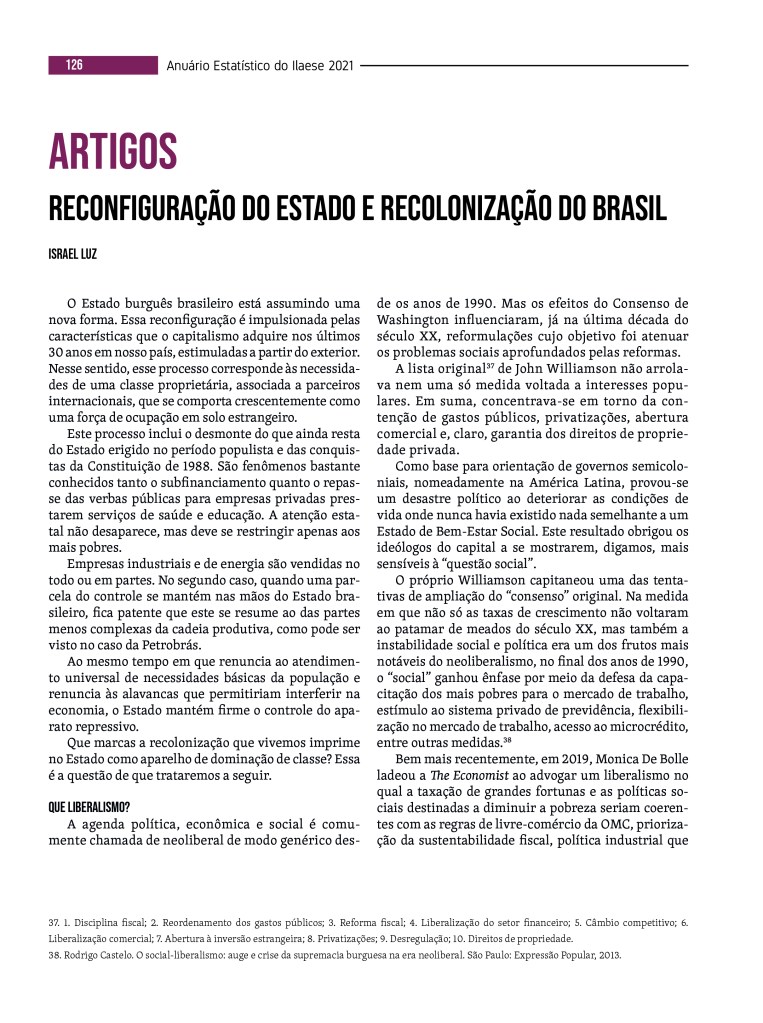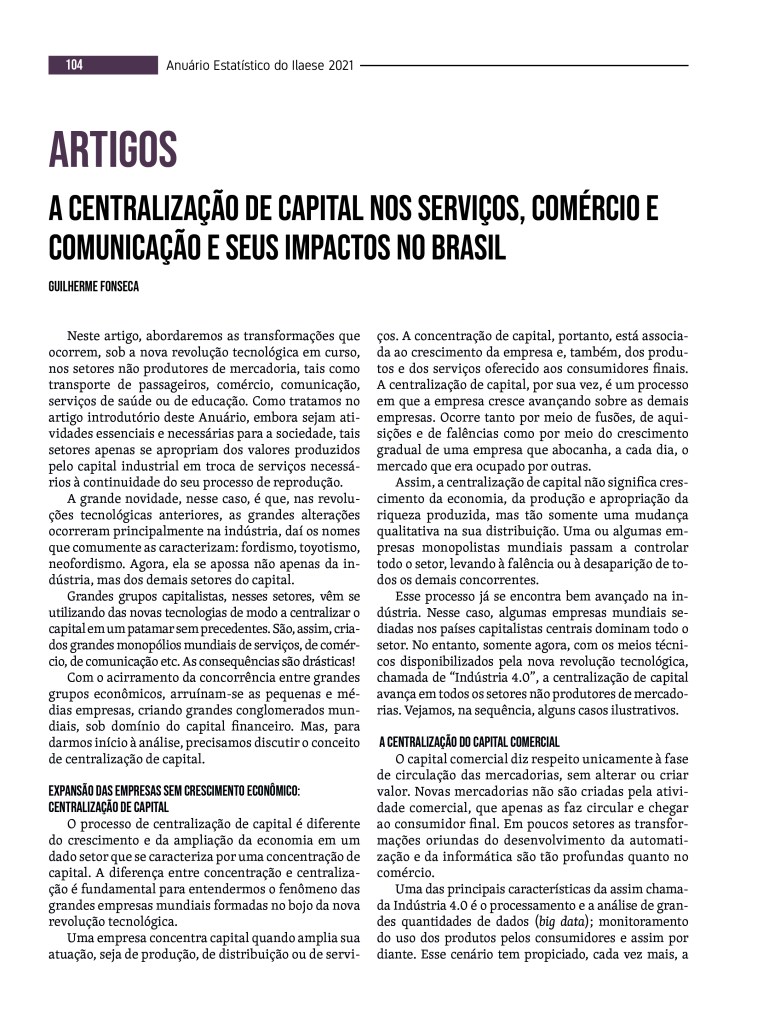 10 de julho de 202310 de julho de 2023 A Comuna: revista de crítica social Anuário Estatístico do ILAESE: trabalho e exploração anuario_2021_versao_final_digital-3-1Baixar Compartilhe isso: Clique para compartilhar no X(abre em nova janela) 18+ Clique para compartilhar no Facebook(abre em nova janela) Facebook Clique para imprimir(abre em nova janela) Imprimir Clique para enviar um link por e-mail para um amigo(abre em nova janela) E-mail Clique para compartilhar no WhatsApp(abre em nova janela) WhatsApp Curtir Carregando... Relacionado