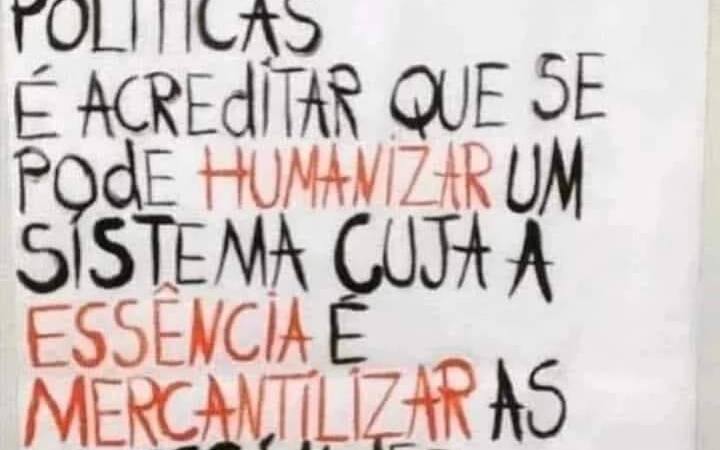 Ora, qualquer perspectiva liberal (“democrática”) aparentemente descolada e propagada pelos mass media, escolas e grandes bancos que não reafirme pelo critério da denúncia o expresso apenas lubrifica a máquina da lógica vampiresca com o sangue e energia canalizados das vidas subhumanizadas, sob o horizonte da morte no tempo presente – embora autointituladas de “empoderadas”.