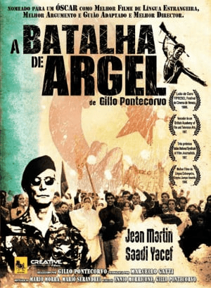 “A Batalha de Argel” é um filme ítalo-argelino lançado em 1966 e dirigido por Gillo Pontecorvo. O filme retrata a luta da Frente de Libertação Nacional (FLN) argelina contra as forças coloniais francesas durante a Guerra de Independência da Argélia na década de 1950. O filme começa com um ataque da FLN a uma rua francesa em Argel, seguido da prisão e interrogatório do líder da FLN, Ali La Pointe. O filme então mostra a organização da FLN e a luta armada contra as forças francesas, bem como a reação das autoridades francesas, que usam tortura e terrorismo para reprimir a luta de independência.”A Batalha de Argel” é notável por sua abordagem realista e documental, com muitas cenas filmadas no local e com atores não profissionais. O filme também é famoso por sua trilha sonora de Ennio Morricone, que é considerada uma das melhores trilhas sonoras do cinema. O filme foi bem recebido pelos críticos e é considerado uma das obras-primas do cinema político. “A Batalha de Argel” é um retrato comovente e emocionante da luta pela independência argelina e um testemunho da resistência anticolonial que inspirou muitos movimentos de libertação em todo o mundo.